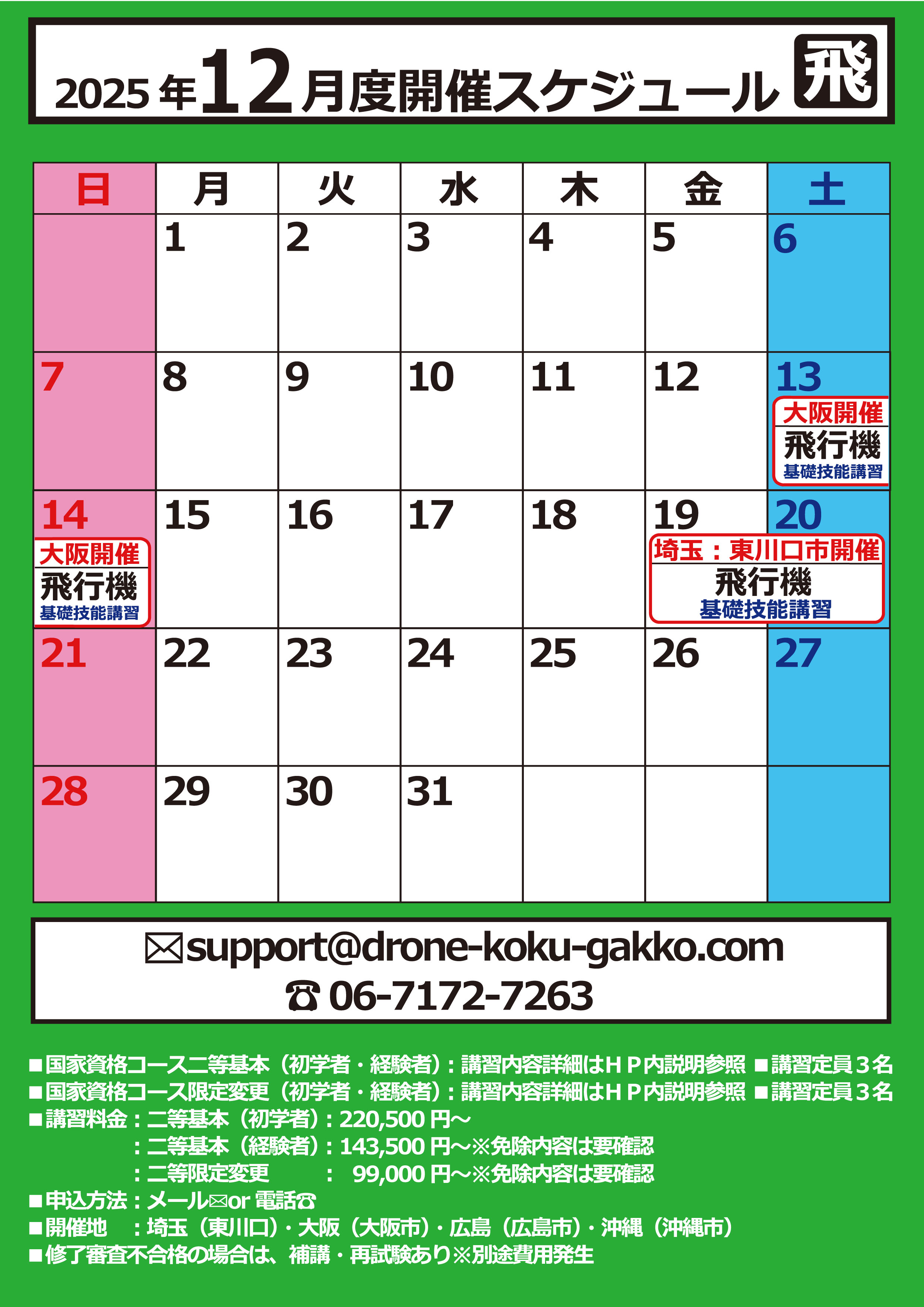 ※ドローン検定所持者(講習代・テキスト代・ライセンス発行料・機体レンタル料含む)
