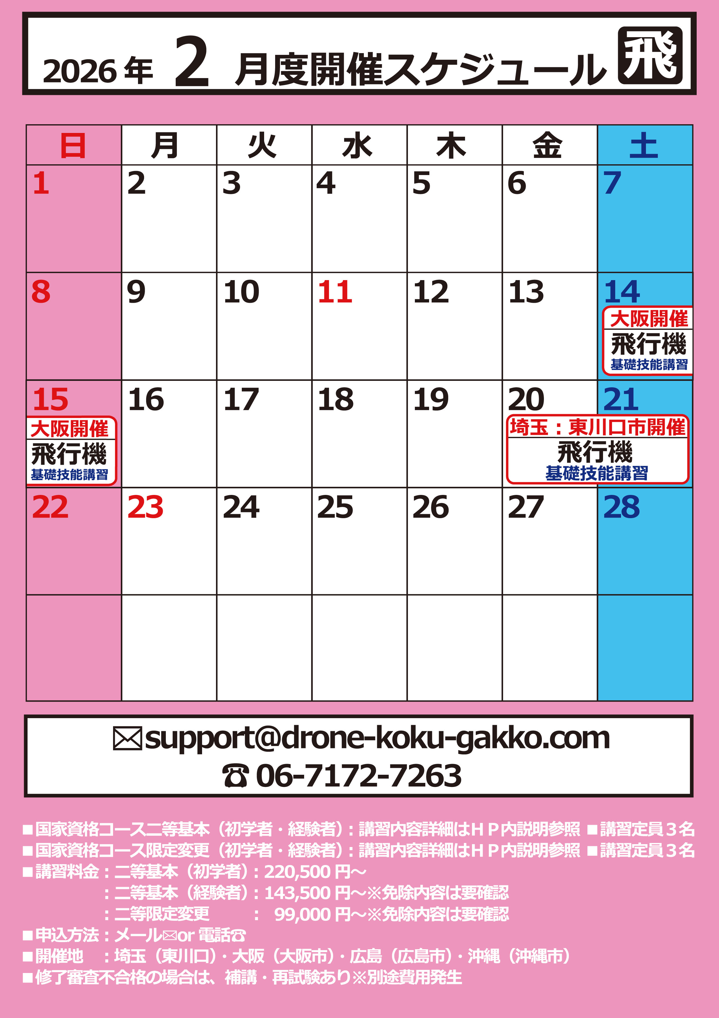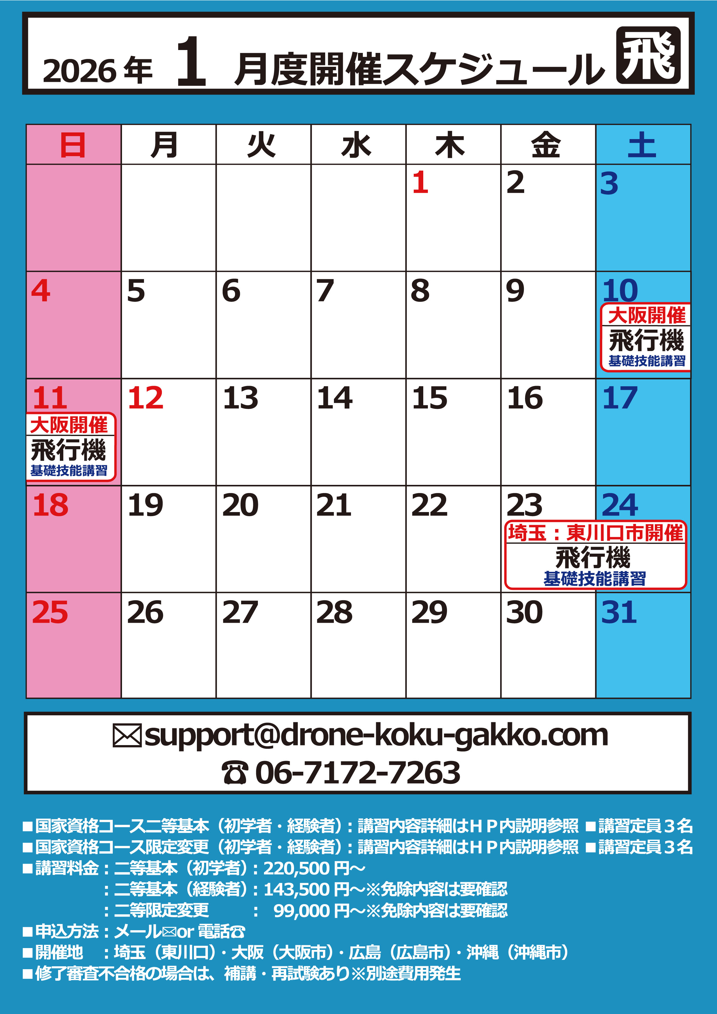 安全に操縦するための技能を身につけたい方、主に初心者の方、ドローン購入前の方もOK